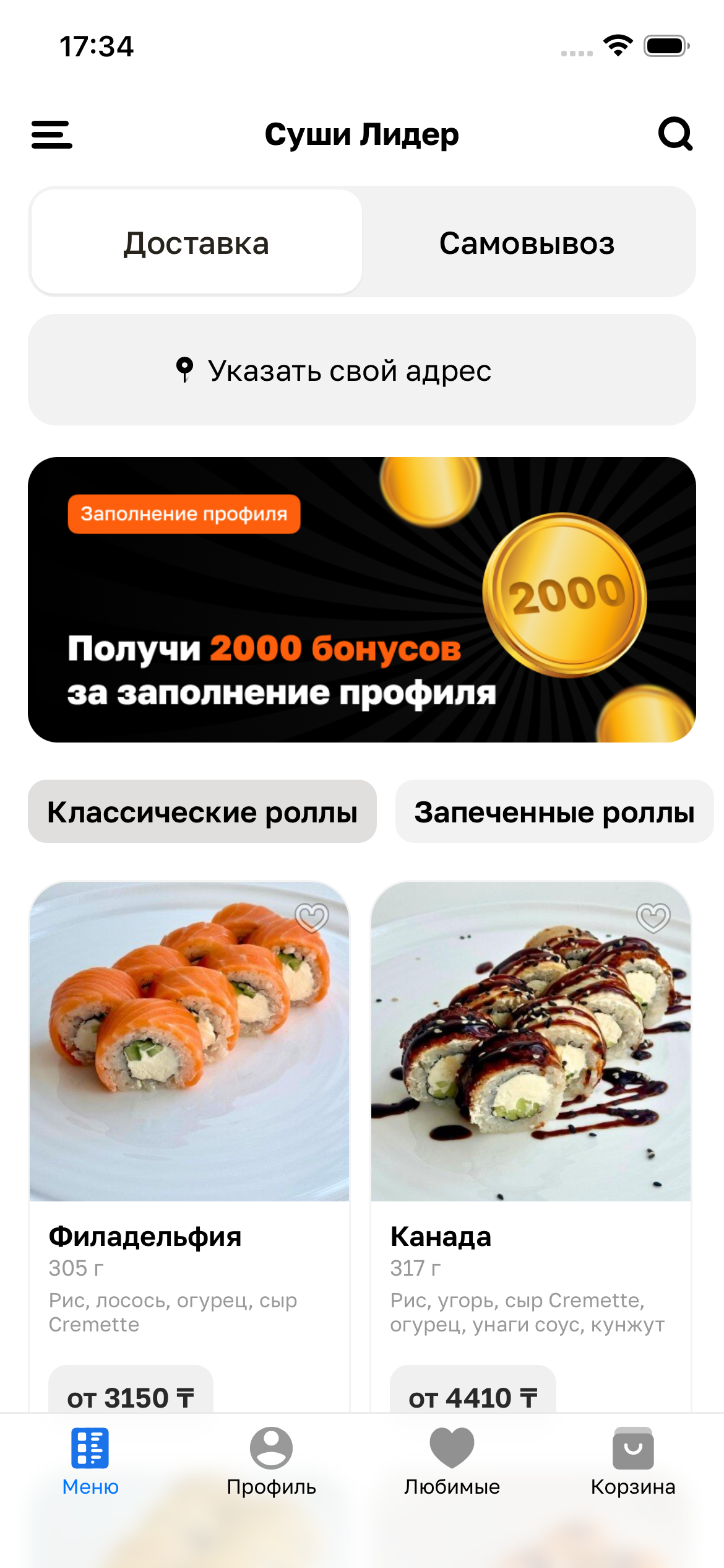 Филадельфия, Калифорния, Лава Креветка, Лава Краб, Чикен Хот, Цезарь, Мини огурец, соевый 3шт, васаби 2шт, имбирь 2шт